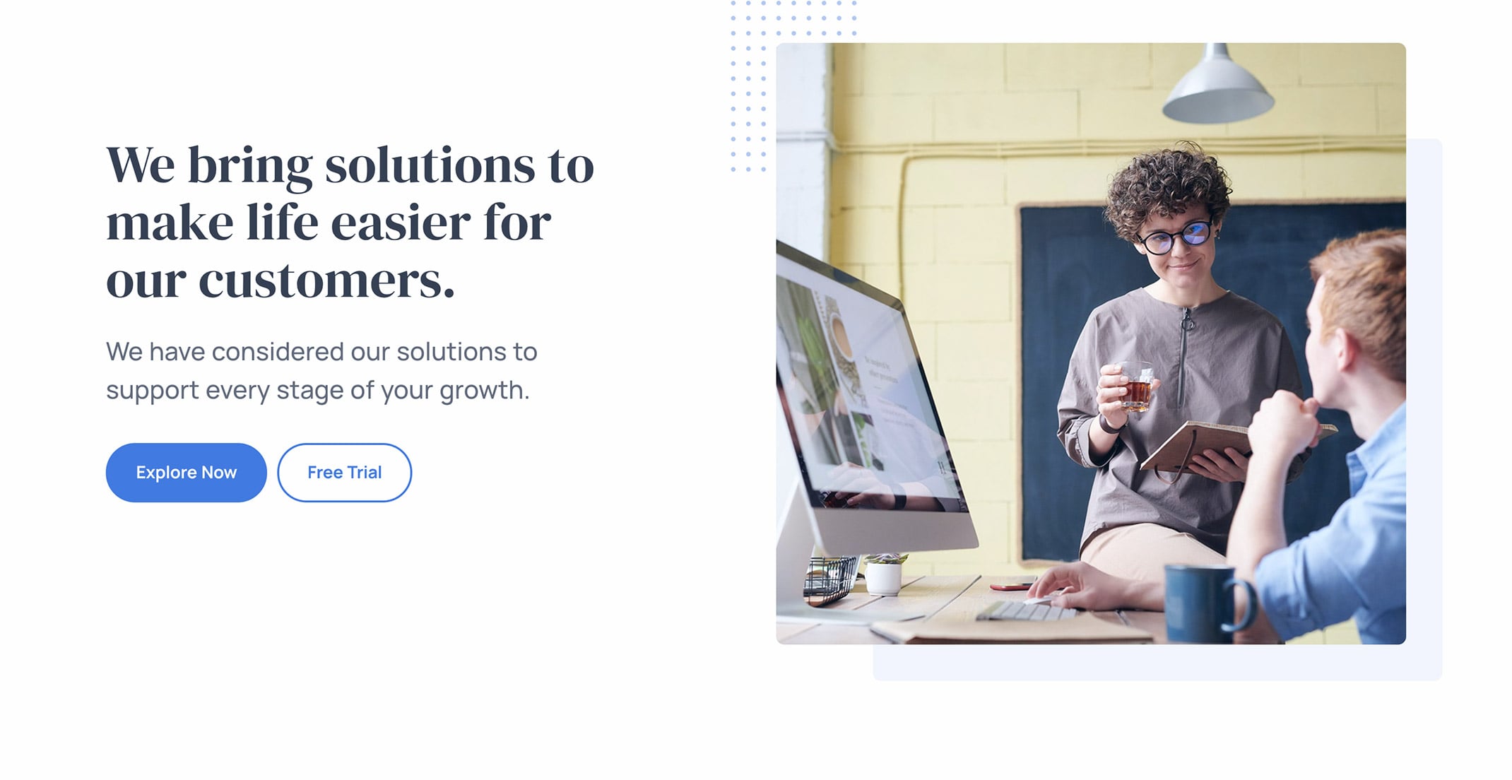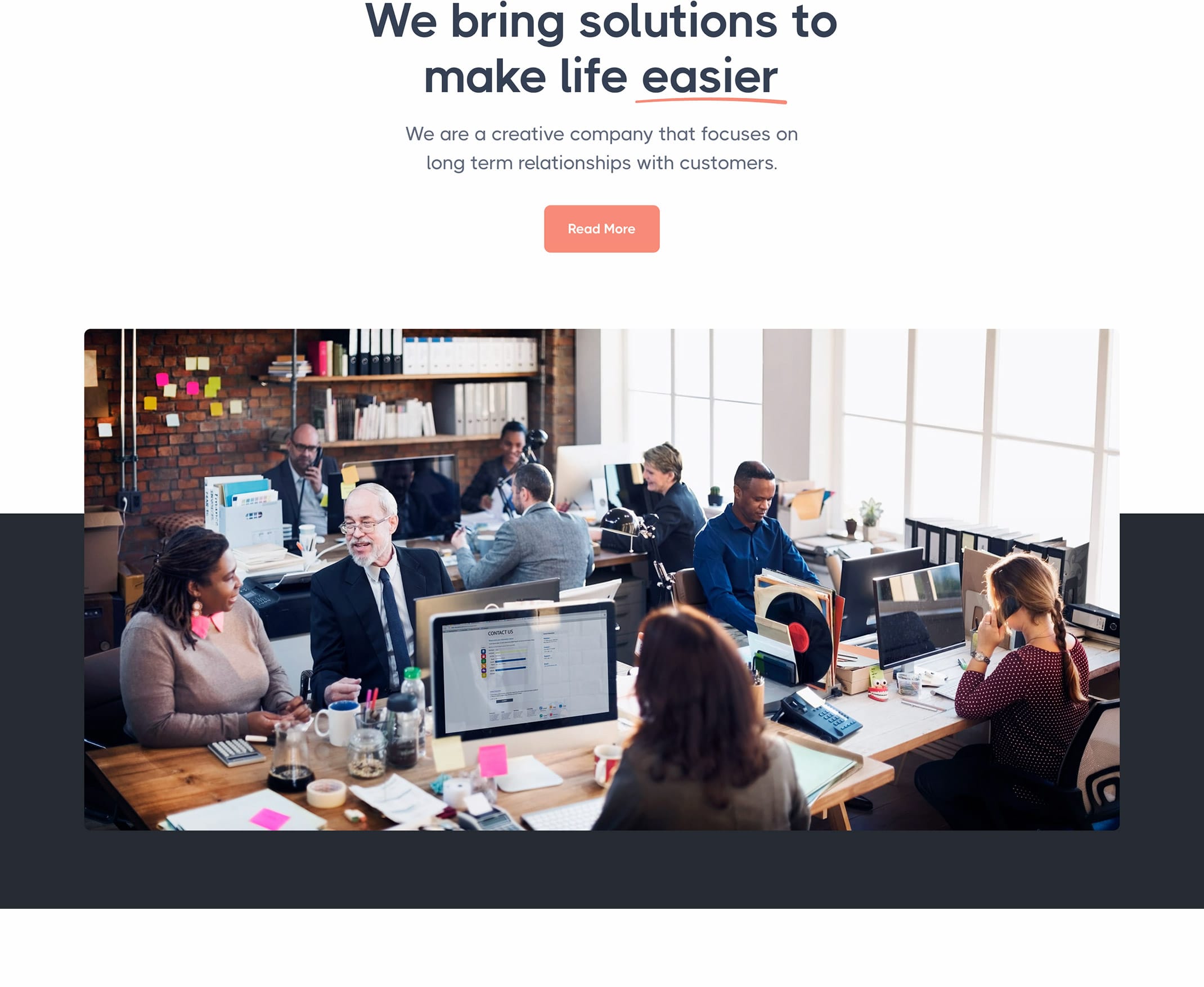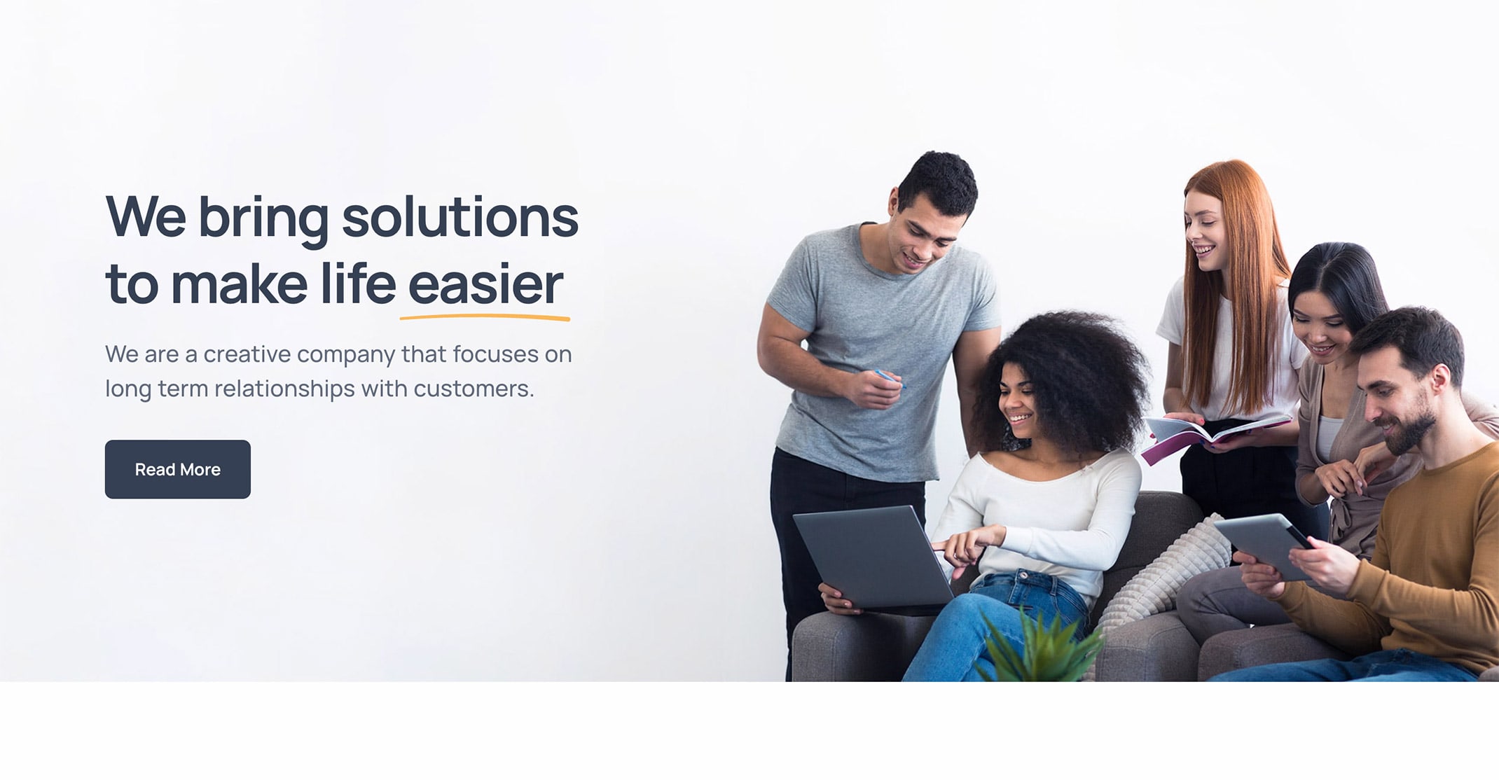<h1 class="display-1 mb-5">We bring solutions to make life easier for our customers.</h1>